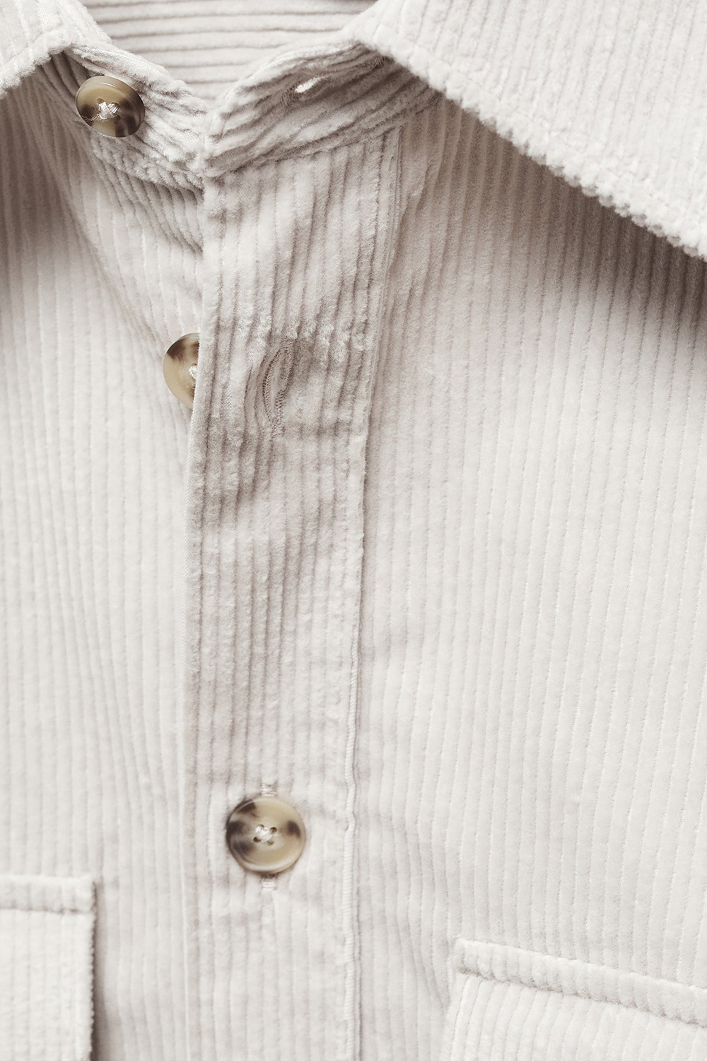 Regular fit. Cotton fabric. Corduroy fabric. Classic collar. Front button closure. Two patch pockets with flaps on the chest. Long sleeve with buttoned cuffs. Rounded hem. The model is 6'3" and is wearing a size M.